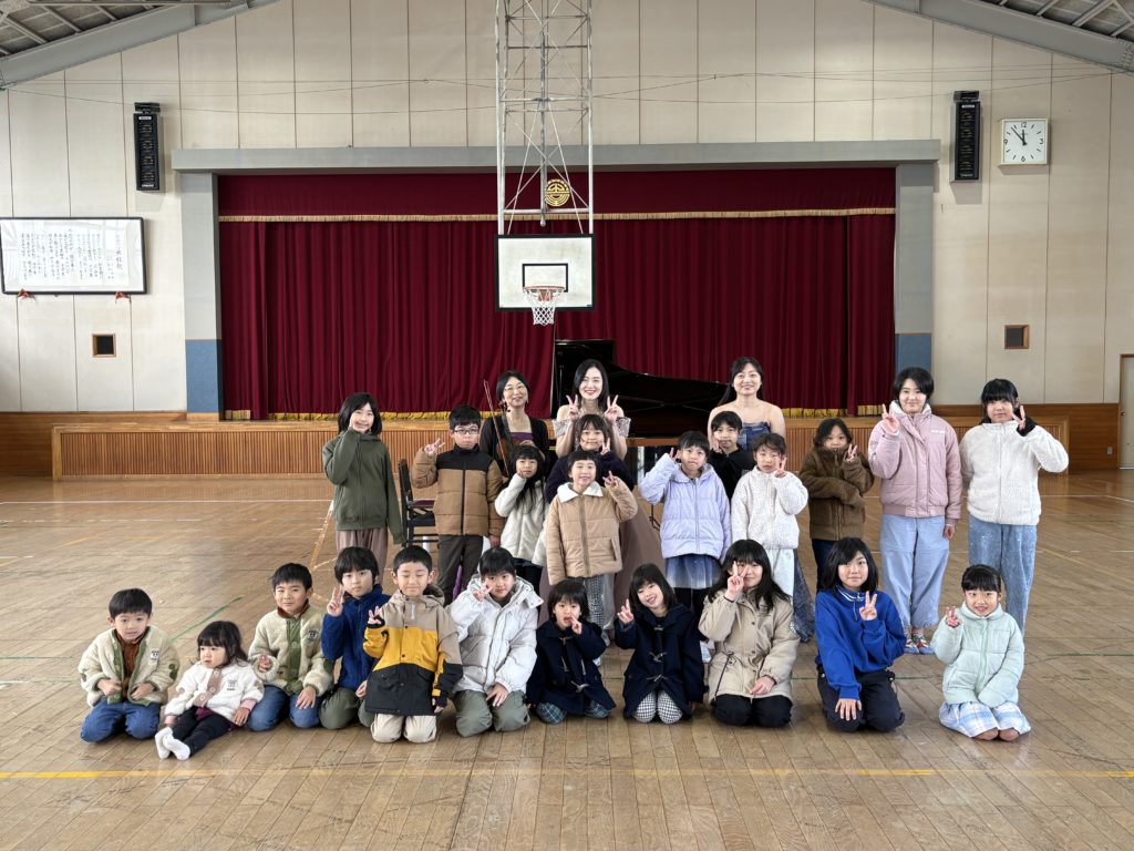 12月13日(土)、吉田小学校にて音楽コンサートが開催されました。 当日は、弊法人で日頃より音楽指導をしてくださっている須藤先生の美しい歌声に加え、ヴァイオリン奏者の中山ゆき子さん、ピアノ奏者の山根ゆいさんをお迎えし、三者が織りなす贅沢なハーモニーを届けていただきました。 会場はまるで音楽の世界へと引き込まれるような空間となり、子どもたちはもちろん、保護者の皆さまにとっても心に残る特別なひとときとなりました。